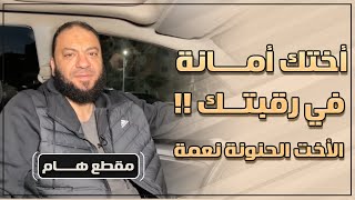 انا باقول لك مش باقول لك اختك امانة في رقبتك. انا باقول لك اختك باب من ابواب الجنة. انا باقول لك مفاجآت هنا. هاجيب لك احاديس صحيحة عن النبي، عليه الصلاة والسلام. اختك باب من ابواب - 00:01:02ضَ