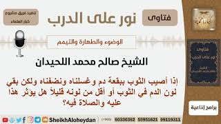 إذا أصيب الثوب ببقعة دم وغسلناه ولكن بقي أثر الدم أو لونه فهل يؤثر هذا عليه والصلاة فيه؟ اللحيدان