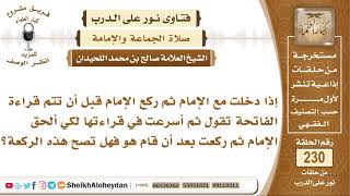 إذا دخلت مع الإمام ثم ركع الإمام قبل أن أتم قراءة الفاتحة ثم ركعت بعد أن...؟ صالح بن محمد اللحيدان