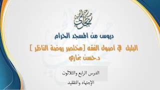 اصلين كبيرين الادلة وطرق الاستنباط منها. وهذان الركنان مر بكم في ابواب متعددة كثيرة اخرها كان القيام في المجلس الماضي والملحق به وهو الاسئلة الواردة على القياس. فاما الاجتهاد والتقليد فقد ذكروه تتمة لانه - 00:02:00ضَ