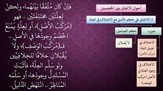 انت ومخالفك في المسألة او مناظرك او بين قوسين خصمك في المسألة يتفق معك في الحكم اي حكم حكم الاصل وانت تريد ان تستخدم القياس الان. غير انه يعلل الحكم في الاصل بعلة غير علتك - 00:00:47ضَ
