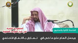 ويحمل العام على ما خص في تعارض بالاتفاق فاحتفي ولي رسالة في هذه القاعدة شرحتها في مئة فرد. العام يبنى على الخاص وهي من قواعد الجمع بين الادلة التي ظاهرها التعارف - 00:00:16ضَ