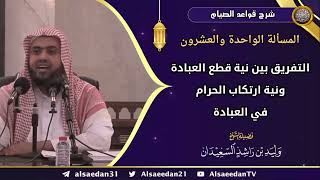 فرع لابد يا طلبة العلم وفق الله هذه الوجوه لكل خير. ان نفرق بين امرين بين نية قطع العبادة ونية ارتكاب الحرام في العبادة. لا بد ان نفرق بين قطع العبادة قطعها نية قطع النية قطع حكم العبادة. وبين نية فعل الحرام في العباد - 00:00:00ضَ