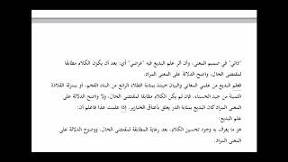 اساسي اما المحسنات مثل الدهان تدهن البيت نعم. وان اثر علم البديع فيه عرضي اي بعد ان يكون الكلام مطابقا لمقتضى الحال واضحة مطابقا لمقتضى الحالي واضح الدلالة على المعنى المراد. مطابقة مقتضى الحامي علم المعاني. واضح الجلالة من علم. بيان. البيان - 00:07:59ضَ