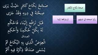 وفقه الله. صحح نكاح كافر حيث يرى صحته في دينه وقد جرى قبل ترافع الينا فاحكمي له بكل حكمنا واحكم الصداق العوض الذي به النكاح تم. يثنى صداقا ذكره فيه اتم. المسألة الاولى هنا عندنا في هذا الدرس هي صحة نكاح الكفار. يعني لا تتخيل يا اخي ولا تظن - 00:00:10ضَ