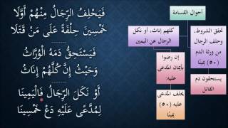 قال الناظم وفقه الله تعالى بعدما ذكر شروط القسامة قال فيحلف الرجال منهم اولا خمسين حلفة على من قتل فيستحق قدمه الوراث وحيث ان كلهم اناث او نكل الرجال فاليمين لمدع عليه دع خمسين. طيب - 00:00:18ضَ