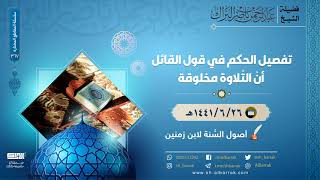 اذا اريد الكلى والمتن نعم اما اذا اريد بالتلاوة نفس فعل القانع القراءة فعل فعله وفعل المخلوق مخلوق في التلفظ تلفظ القارئ حركات حركات يعني ادوات الكلام وادوات النطق كلها - 00:00:45ضَ