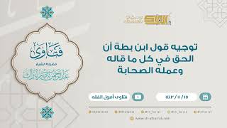 احسن الله اليكم. يقول السائل ذكر ابن بطة فيما يتعلق بالصحابة ان الحق في كل ما قالوه والصواب في كل ما عملوه اه فما معنى قوله وكيف يجمع بينه وبين ان اجتهادهم - 00:00:00ضَ
