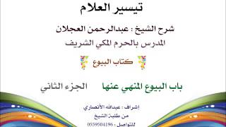 يرشد الامة على ما فيه صلاح الفرد والمجتمع فنبه صلى الله عليه وسلم على انواع من انواع البيوع لا يتعاطاها المسلم لما يترتب عليها من الظرر فقال صلى الله عليه وسلم - 00:02:28ضَ