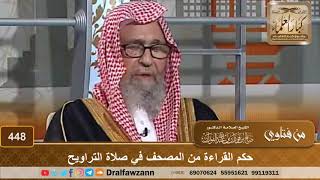 القراءة من اه المصحف في صلاة التراويح لا بأس بذلك على الصحيح في الحاجة الى ذلك ولان آآ ذكوان غلام عائشة كان يصلي بها ويقرأ من المصحف نعم - 00:00:03ضَ