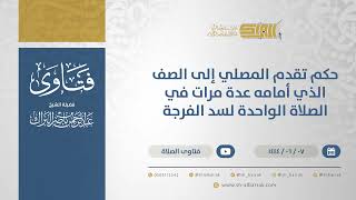 احسن الله اليكم. يقول السائل ما حكم تكرر انتقال المصلي الى الصف الذي امامه كلما وجد فرجة فيه وقد يقع هذا عدة مرات في الصلاة الواحدة. وقد لا تكون الفرجة امامه مباشرة - 00:00:00ضَ