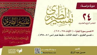 السلام عليكم ورحمة الله وبركاته. الحمد لله رب العالمين وصلى الله على محمد وعلى اله وصحبه وسلم تسليما كثيرا. صباح الخير يا شباب اهلا وسهلا ومرحبا بكم. اه الدرس الرابع والعشرين من اجتماعنا على مدارسة اه تفسير الامام بجريد الطبري عليه رحمة الله. قد وصلنا بحمد الله تبارك وتعالى - 00:00:02ضَ
