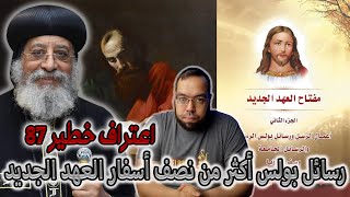 الصفحة رقم مية اربعة وعشرين. تحت عنوان السمات العامة لرسايل بولس الرسول. طبعا احنا اتكلمنا قبل كده كتير عن فكرة ان بولس مستحوز على العهد الجديد ولا لأ واهمية بولس والكلام ده كله. هنا البابا تواضروس الثاني بيقول بمنتهى البساطة. كتب رسائله - 00:00:43ضَ