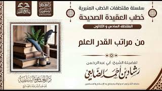 ان الايمان بقدر الله سبحانه وتعالى ينبني على تحقيق الايمان بمراتب القدر وقد دلت الادلة في كلام الله في كلام رسوله عليه الصلاة والسلام ان القدر له اربع مراتب لا يتم ايمان المؤمن بالقدر - 00:00:00ضَ