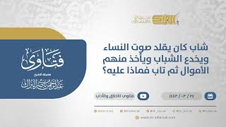 احسن الله اليكم. يقول السائل شاب كان يقلد صوت النساء ويخدع الشباب ويأخذ بطاقات شحن جوال وبلغ اجمالي المبالغ يقول وبلغ يأخذ ويأخذ بطاقات شحن جوال وبلغ اجمالي المبالغ خمسة - 00:00:00ضَ