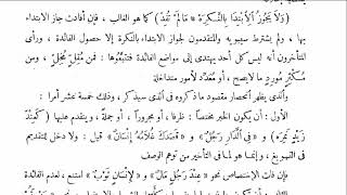 عدم عدم الافادة. قال الصبان الافضل ان نجعلها للتعليل الاحسن ان نجعل الكاف للتعليل كانه قيل وتخصيص النكرة بالذكر مع ان الافادة شرط في الكلام مطلقا لان غالب عدم افادة الابتداء بالنكرة يعني كأنه قيل لماذا خصصت الكلام على الابتداء بالنكرة؟ لماذا لم تذكر المعرفة؟ نقول - 00:01:00ضَ