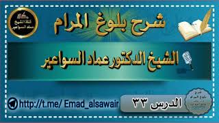 وبعد فهذا هو المجلس الثالث والثلاثون من مجالس شرح كتاب بلوغ المرام من ادلة الاحكام للحافظ ابن حجر من عسقلاني عليه رحمة ربي تترى الى يوم القيامة. وكنا يا كرام قد توقفنا عند حديثين عظيمين في باب واحد. الا وهو - 00:01:20ضَ