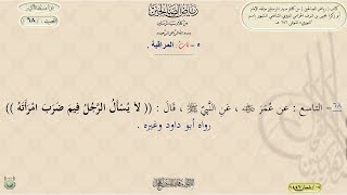 ان عمر رضي الله عنه عن النبي صلى الله عليه وسلم قال لا يسأل الرجل فيما ضرب امرأته قال النووي رواه ابو داوود وغيره هكذا قال النووي علينا وعليه رحمة الله - 00:00:26ضَ