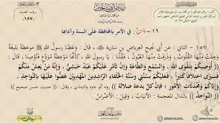 وافرد لفظ بها مع انها تعود على اثنتين لانهما كشيء واحد. وعضوا عليها بالنواجذ اي اخر الاضراس يعني بذلك الجد في لزوم السنة والتمسك بها. قال واياكم اي احذروا واجتنبوا. واياكم ومحدثات الامور. اي الامور التي تحدث بعد ذلك - 00:04:44ضَ