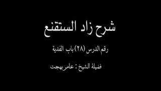 واصحابه اجمعين اللهم اغفر لشيخنا ولوالديه وللمسلمين يا رب العالمين قال المصنف رحمه الله تعالى باب الفدية وفي هذا الباب يذكر المصنف رحمه الله تعالى قسمي الفدية. والفدية تنقسم الى قسمين على وجه الاجمال. القسم - 00:00:52ضَ