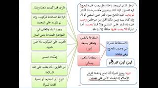 الشرط السابع والاخير هذا شرط خاص بالنساء وجود زوج او محرم او اسوة ثقات. واضح وغير واضح؟ هذه كم؟ هذه سبعة. هذه سبعة تسمى الاستطاعة بالنفس شروط الاستطاعة بالنفس اول شرط من شروط الاستطاعة بالنفس الزاد. مقصود بالزاد اي ما يتزود به المسافر - 00:16:23ضَ