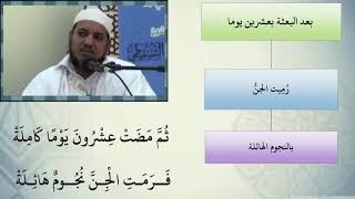 قال ثم مضت عشرون يوما كاملة فرمت الجن نجوم هائلة. اي بعد بعثة النبي صلى الله عليه وسلم بعشرين يوما ذهبت الجن لتسترق السماء. فرماهم الله سبحانه وتعالى ورمتهم نجوم هائلة. عبروا عن ذلك بقول الله تعالى وان - 00:00:01ضَ
