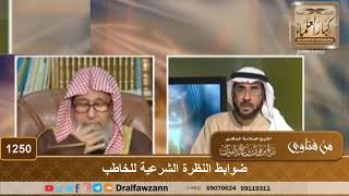 طيب سؤال اخر يسأل عن النظرة الشرعية بارك الله فيكم للخاطب النظرة الشرعية للخاطب ان ينظر اليها بحضرة محرمها ولا يخلو بها وينظر ايضا الى ما يرغبه فيها من النظر الى وجهها وشعرها - 00:00:22ضَ