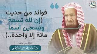 وقد جاء في الصحيحين قول المصطفى صلى الله عليه وسلم ان لله تسعة وتسعين سنة. من احصاها دخل الجنة وهو وتر يحب الوتر. وليست هذه التسع والتسعين حصرت اسماء الله فيها بل اسماء الله كثيرة لا حصر لها - 00:00:01ضَ