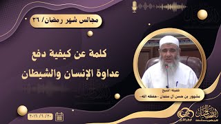 فقد علمنا ربنا تعالى في ثلاثة مواطن من كتابه لا رابع لها. كيف ندفع وندرأ عداوة الشيطان وعداوة الانسان. الله الله جل في علاه جمع وقرن في ثلاثة مواطن في كتابه ذكر عداوة الشيخ - 00:00:30ضَ
