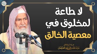 لا طاعة لمخلوق لمعصية الخالق كما جاء في صحيح مسلم ان النبي صلى الله عليه وسلم ارسل سرية وامر عليهم رجلا من الانصار وحثهم على طاعته وقال من اطاعه فقد اطاعني ومن عصاه فقد عصاني - 00:00:21ضَ