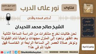 نحن طالبات نخرج اه متأخرات من الدراسة الساعة الثانية بعد الظهر ونعود الى المنزل مجهدات واحيانا ننام القيلولة ونؤخر صلاة العصر الى الساعة الرابعة او الخامسة فهل علينا اثم في هذا - 00:00:00ضَ