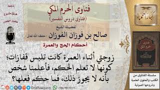 زوجتي اثناء العمرة كانت تلبس قفازات كونها لا تعلم الحكم فاعلمنا شخص بانه لا يجوز ذلك فما حكم فعلها؟ تعذر بالجهل ما دامت لبست القفازات وهي جاهلة وهي محرمة تعذر بالجهل لكن في المستقبل - 00:00:00ضَ