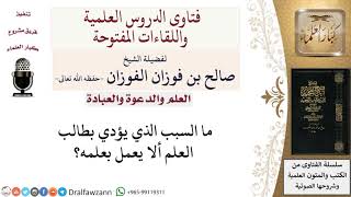ما السبب المؤدي إلى عدم العمل بالعلم؟ لمعالي الشيخ صالح الفوزان