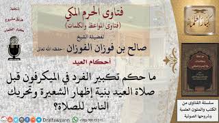 يقول السائل ما حكم تكبير الفرض في الميكروفون قبل صلاة العيد؟ بنية اظهار الشعيرة وتحريك الناس للصلاة ما يكبر بالمكرهون ما يكبر يكبر بالصوت المجرد بالصوت المجرد كل يكبر لنفسه بدون مكبر صوت - 00:00:00ضَ