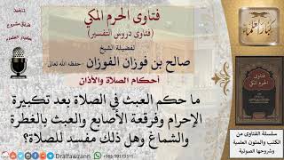 ما حكم العبث في الصلاة بعد تكبيرة الاحرام وفرقعة الاصابع والعبث بالغترة والشماغ وهل ذلك مفسد للصلاة العبث في الصلاة مكروه ومنقص للصلاة فان كثر اذا كثر وتوالى فانه يبطل الصلاة - 00:00:00ضَ