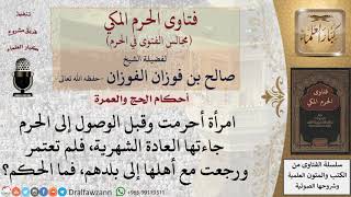 ما حكم المرأة إذا أحرمت ثم حاضت فلم تعتمر ورجعت مع أهلها إلى بلدهم؟ للشيخ صالح الفوزان