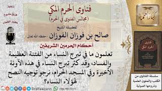 يقول تعلمون ما في تبرج النساء من الفتنة العظيمة والفساد وقد كثر تبرج النساء في هذه الاونة الاخيرة وفي المسجد الحرام نرجو توجيه النصح لهؤلاء النساء تبرج حرام في المسجد الحرام وفي غيره وهو اظهار الزينة - 00:00:00ضَ