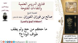 ما حكم من حج ولم يطف طواف الوداع يكون عليه فدية من طواف الوداع واجب من واجبات الحج ومن ترك واجبا فعليه فدية فعليه فدية يذبحها في مكة ووزعها على فقراء الحرم ولا يأكل منها شيئا - 00:00:00ضَ