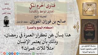 هذا يسأل عن تكرار العمرة في رمظان وذلك بان يعتمر الانسان مثلا ثلاث عمرات. هذا تكرر السؤال والجواب عنه قلنا لكم يا اخوان الافظل لكم والاحسن البقاء في المسجد الحرام - 00:00:01ضَ