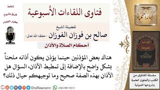 احسن الله اليكم صاحب الفضيلة وهذا السائل يقول هناك بعض المؤذنين حينما يؤذن يكون اذانه ملحنا بشكل واضح بالاضافة الى تمضي في الاذان السؤال هل الاذان بهذه الصفة صحيح؟ وما توجيهكم حيال ذلك؟ الصحة صحيح لكنه مطلوب - 00:00:00ضَ