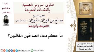 سائل يقول ما حكم دعاء اه الصالحين الغائبين مم يقول ما حكم دعاء الصالحين الغائبين لا يجوز دعاء الغائب ولا الميت ولا الجن ما يجوز دعاؤهم وهم غائبون نعم ولانهم ما يسمعونه غايب ما يسمع - 00:00:00ضَ