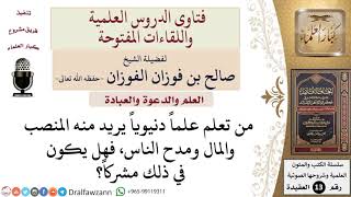 ما حكم من تعلم العلم الدنيوي لأجل المال والمنصب؟ للشيخ صالح الفوزان