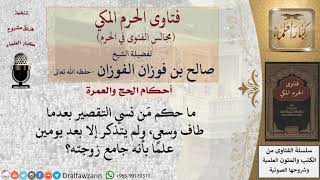 جزاكم الله خيرا. هذا السائل يقول ما حكم من نسي التقصير بعدما طاف وسعى؟ ولم يتفكر الا بعد يومين علما بانه جامع زوجته. يجب عليه شيئان اولا عليه فدية عن الجماع - 00:00:00ضَ
