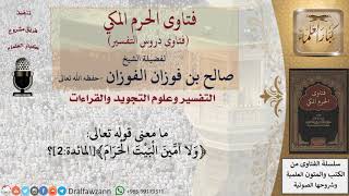 بارك الله فيكم. ما معنى قوله تعالى ولا امين البيت الحرام قاصدين الان مين يعني القاصدين البيت الحرام؟ لا يجوز لاحد ان يصدهم فيجب ان يمكن من اتى الى المسجد الحرام - 00:00:00ضَ