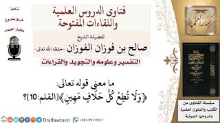 ما معنى قوله تعالى ﴿ولا تطع كلّ حلّاف مهين﴾القلم10؟ لمعالي الشيخ صالح الفوزان