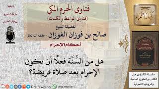 يقول السائل هل من السنة فعلا ان يكون الاحرام بعد الصلاة فريضة لا ما يشترط للاحرام ان يكون بعد صلاة لا فريضة ولا غيرها ولكن المستحب والافضل اذا كان يريد الاحرام - 00:00:00ضَ