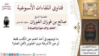 ما هي نصيحتكم لمن يأخذ العلم عن الكتب أو الأشرطة فقط؟ لمعالي الشيخ صالح الفوزان