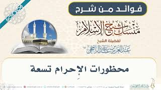 ما هي محضرة الاحرام محظورة الاحرام بالاستقراء والتتبع. تتبع العلماء تسعة تسعة ما هي اذا احرم الانسان وجب علينا منها آآ الرجل تغطية الرأس لبس المخيط اه اخذ شيء من الشعر - 00:00:00ضَ