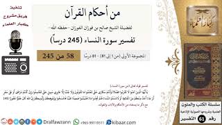 من أحكام القرآن الكريم - سورة النساء - القسم الأول - الشيخ صالح الفوزان - مشروع كبار العلماء