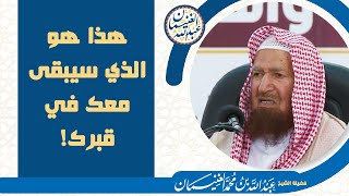 يرجع اهله وماله يعني اهله يودعونه القبر ويدفنونه هذا اخر العهد به. غالبا يكون هذا والمال كذلك تجهيزه كفن وما كفن فقط ثم يرجع يأكله غيره. ويبقى معه العمل الذي يستهين به كثيرا. فان كان صالحا - 00:00:27ضَ